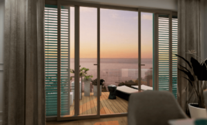 Budynek został zaprojektowany w taki sposób, aby każdy apartament posiadał widok na morze.
